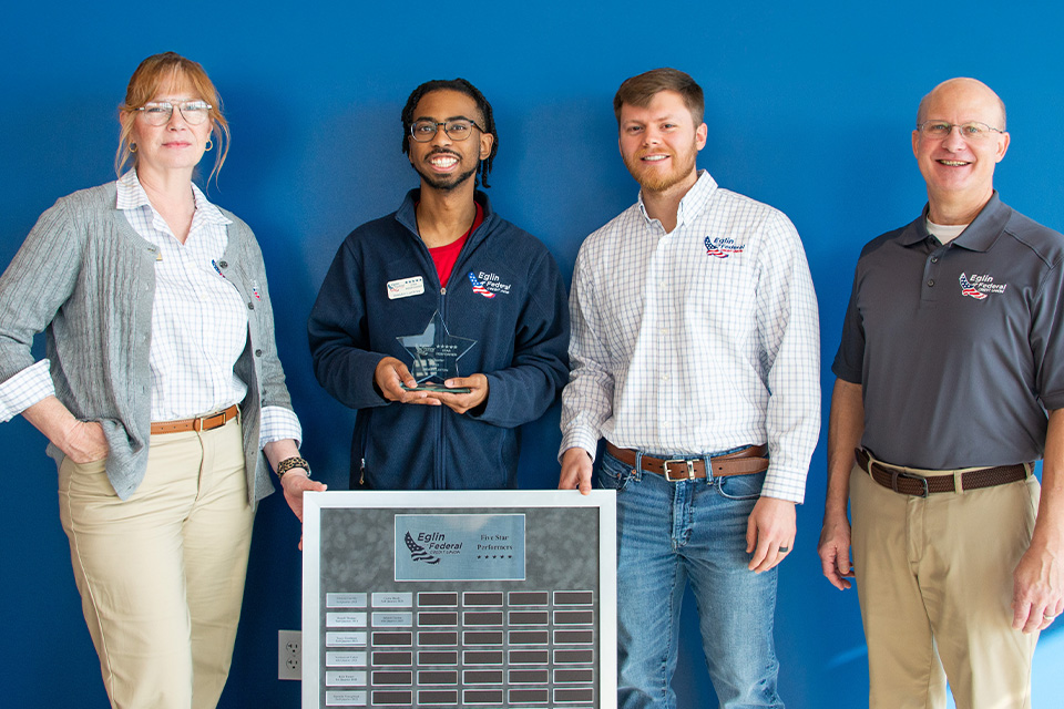 "I was extremely surprised and honored to receive this award," said Kyle. "I really enjoy working hard and being part of the Eglin Federal Credit Union team."