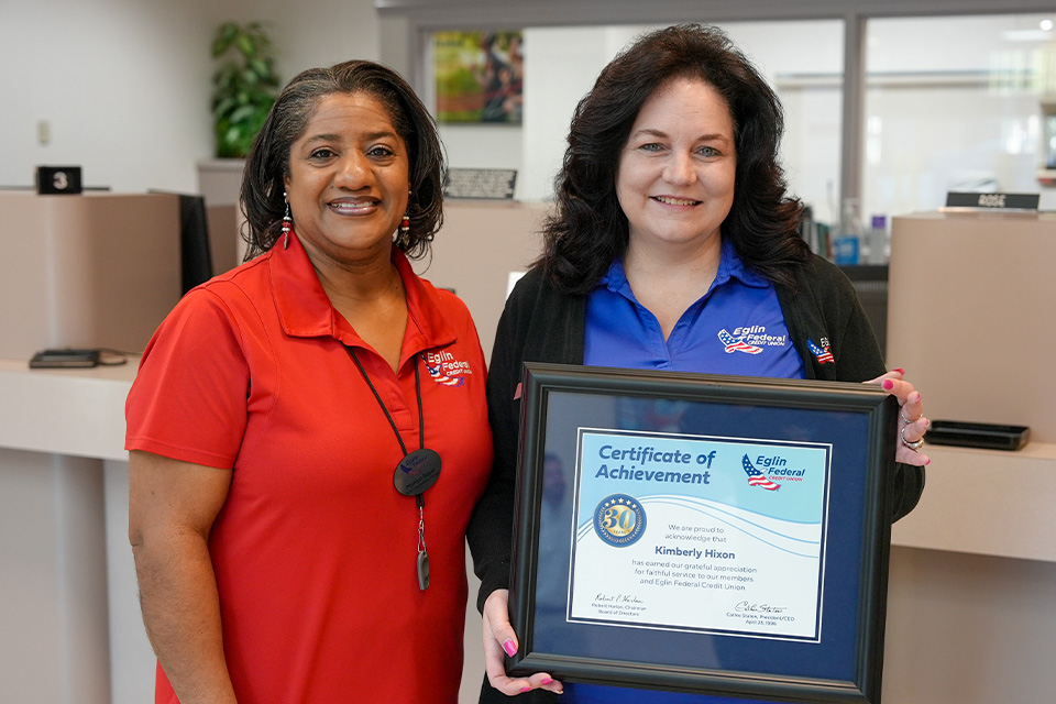 FORT WALTON BEACH, Fla. (April 6, 2026) – Eglin Federal Credit Union is pleased to congratulate Member Service Counselor II Kimberly Hixon for 30 years of service. Kimberly currently resides in Crestview.